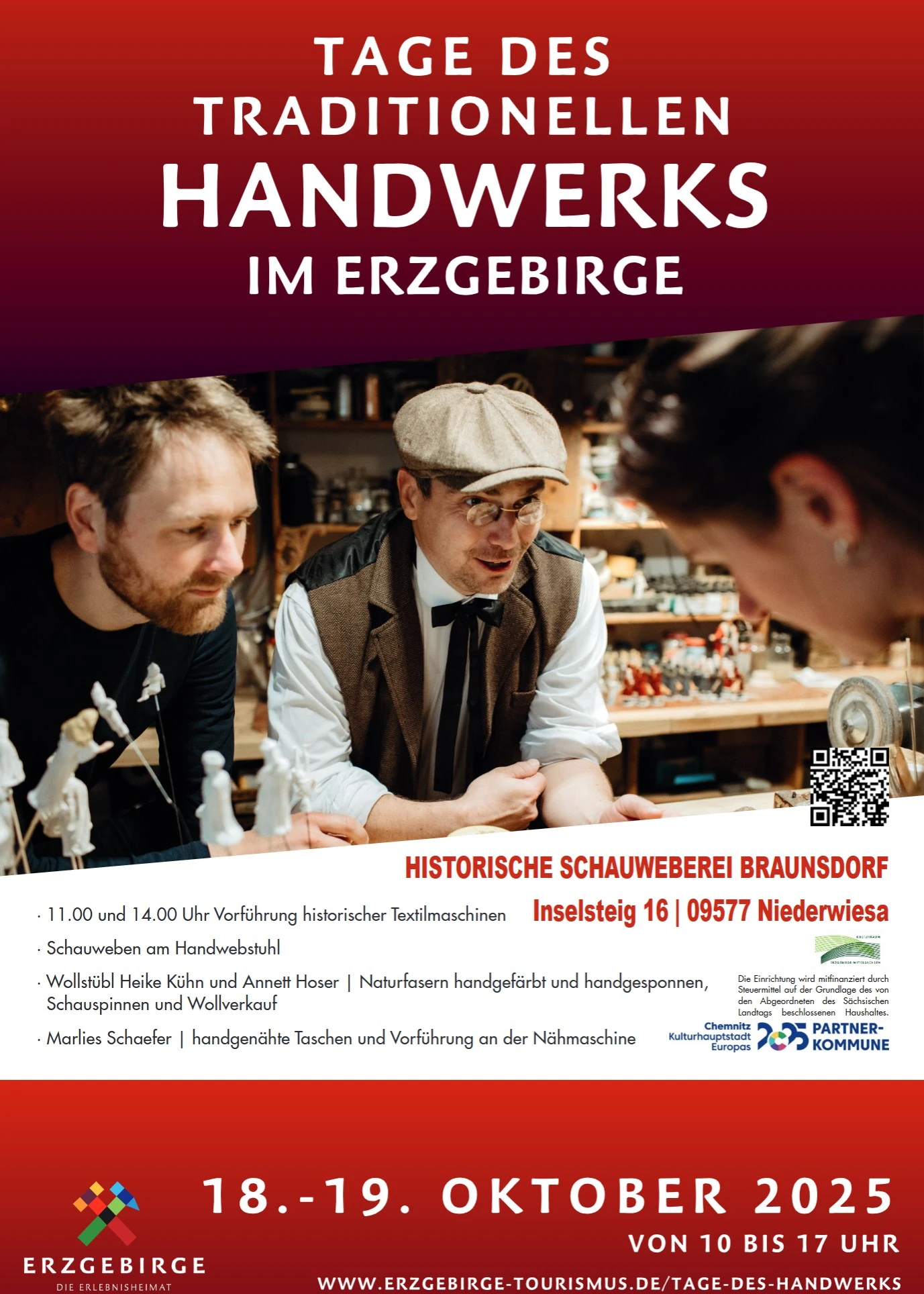 Das Projekt WEBE DEINEN HORIZONT konnte umgesetzt werden durch die Unterstützung von eins energie in sachsen und des Regionalmanagements der Europäischen Kulturhauptstadtregion Chemnitz.